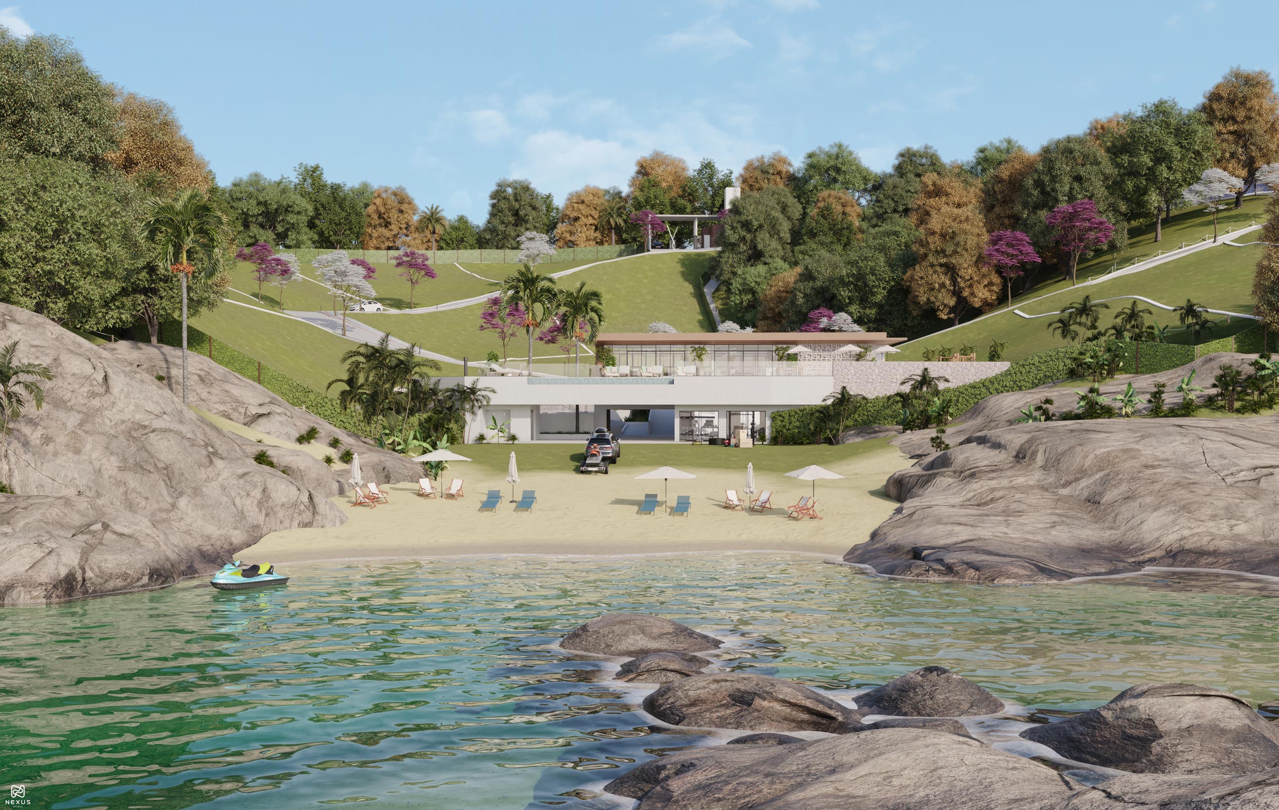 Acesso à praia, inclusive com descida de jet ski